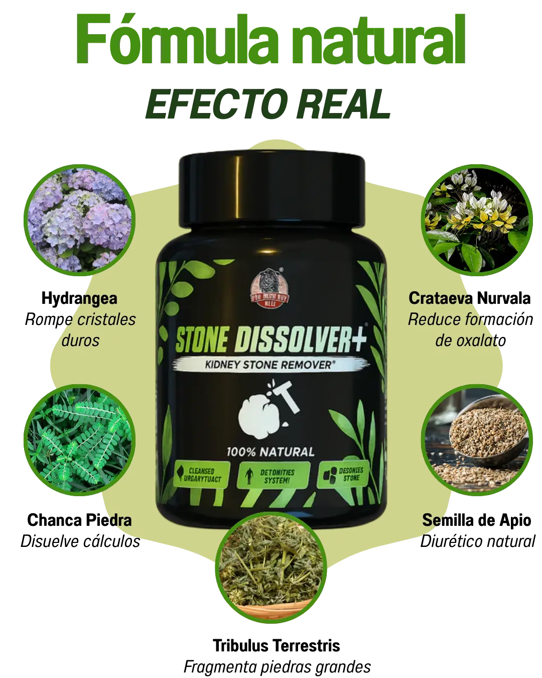 Disuelve y expulsa piedras pequeñas desde la primera fase del tratamiento con ingredientes 100% naturales y respaldo de clientes colombianos satisfechos.